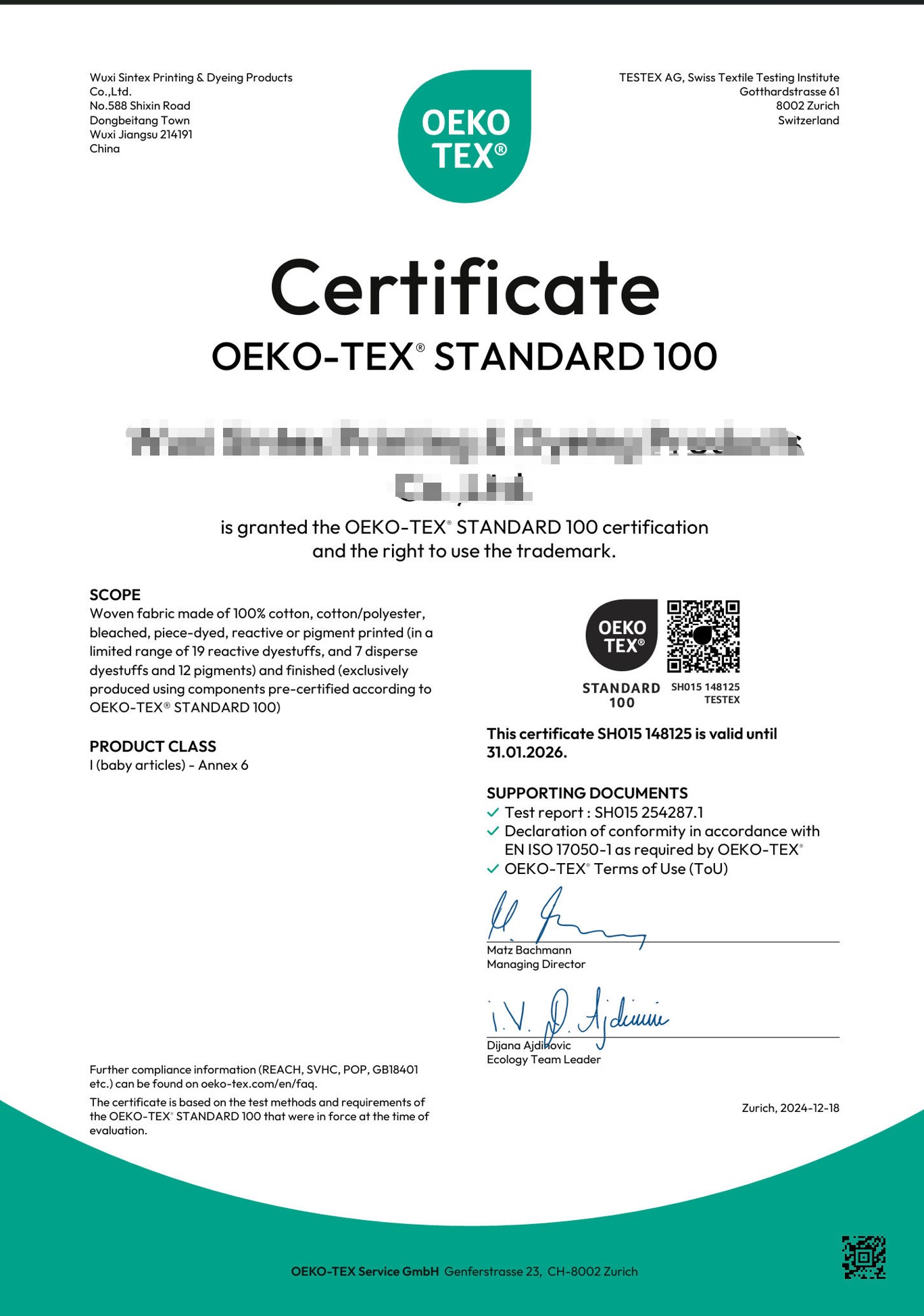 - Wuxi Sintex Printing & Dyeing Products Co.,Ltd